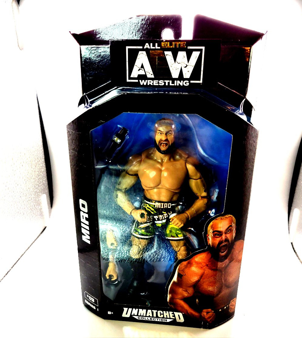 With multiple points of articulation, fans can pose Miro in a variety of wrestling stances and moves, capturing his intensity in the ring. This action figure may include accessories such as interchangeable hands to enhance playability and display options. Ideal for collectors and wrestling fans, the Miro Unmatched Series 1 action figure is perfect for recreating iconic matches or displaying alongside other AEW figures in a collection.