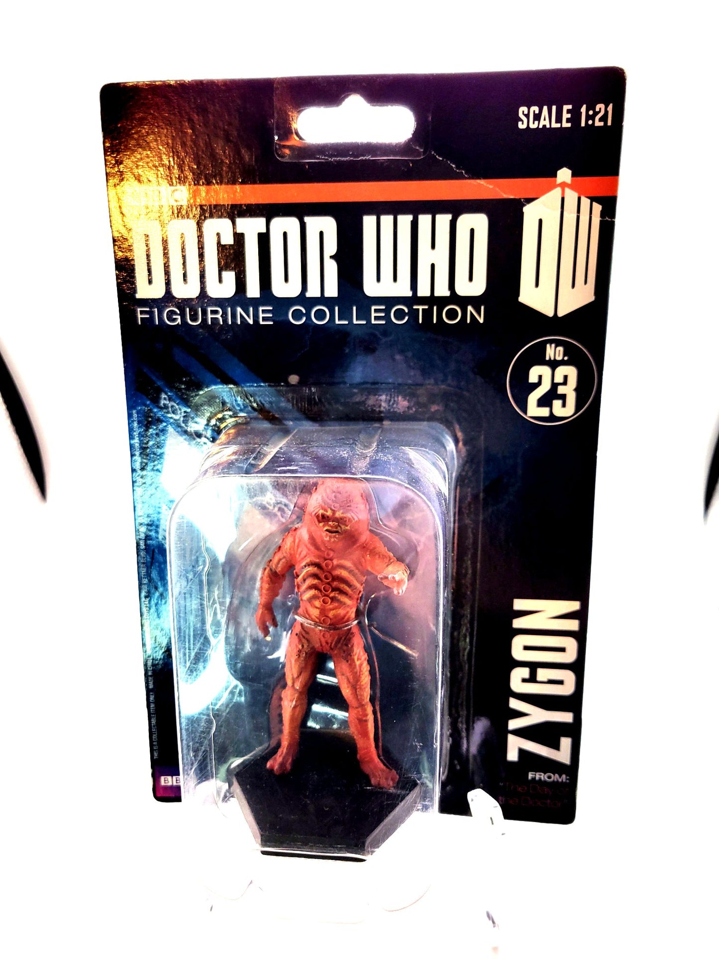 The Eaglemoss Doctor Who Figurine Collection #23 features a Zygon, a classic alien antagonist from the Doctor Who series. This hand-painted, highly detailed figure stands approximately 3.75-4 inches tall and is crafted from high-quality resin. It depicts the Zygon in its iconic, textured, red-orange skin with suckered details, evoking the appearance of the creature from its modern TV appearances, particularly from the episodes The Day of the Doctor (2013) and The Zygon Invasion/The Zygon Inversion (2015).