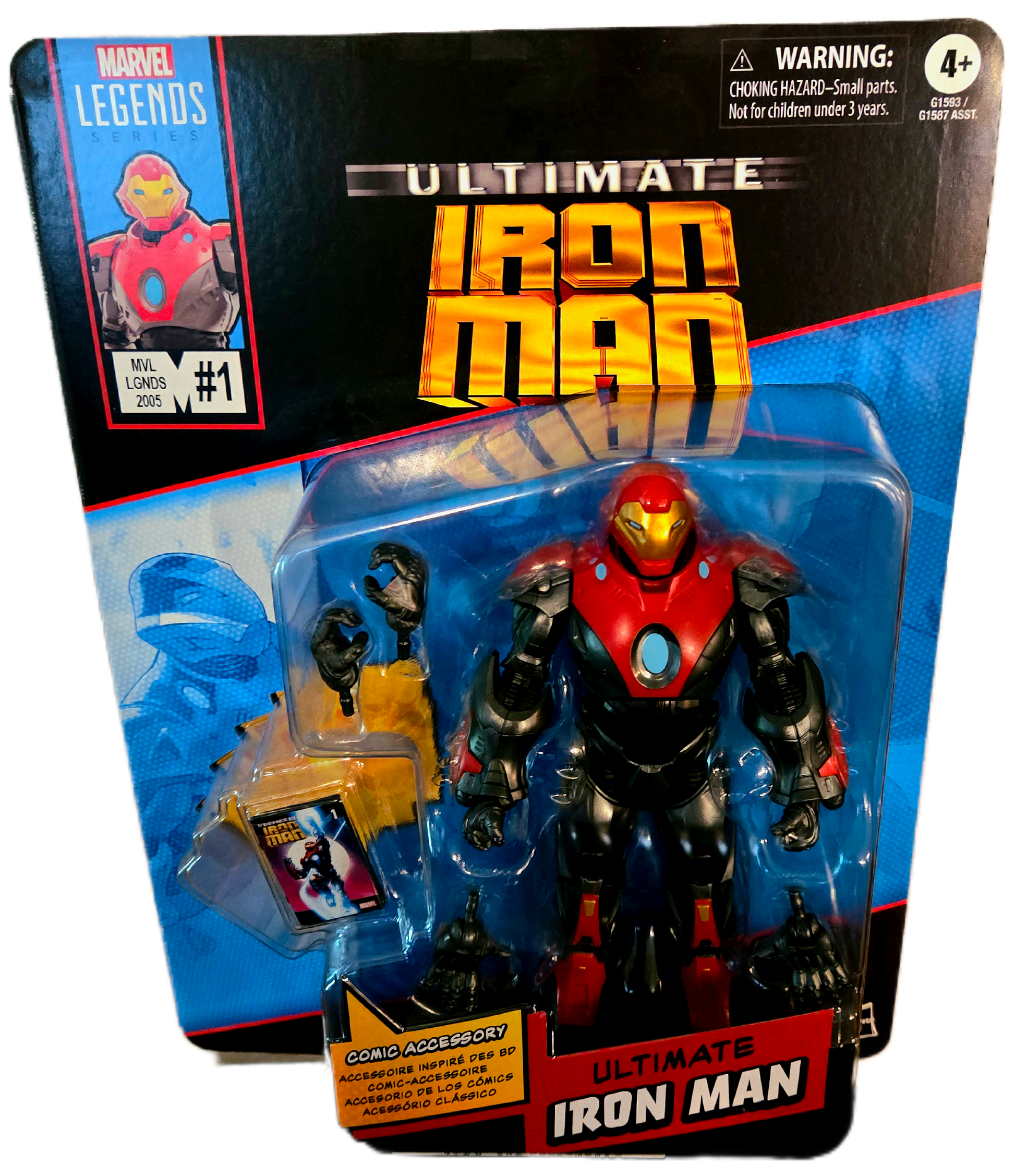 Plastic Comic Book Accessory: A unique and highly anticipated accessory is a 6-inch scale plastic replica of the cover of Ultimate Iron Man #1 (2005), the comic that inspired the figure's design. This adds a nostalgic touch and makes the figure stand out in a collection.