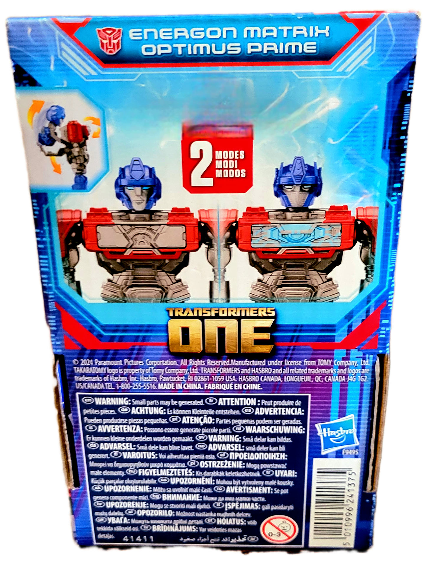 Transform and roll out with the Hasbro Transformers One Energon Matrix Optimus Prime figure! Standing at 4.5", this figure is equipped with an Energon Matrix, allowing for powerful energy blasts and epic battles against the Decepticons. With its detailed design and articulation, this figure is perfect for fans of the iconic Transformers series.