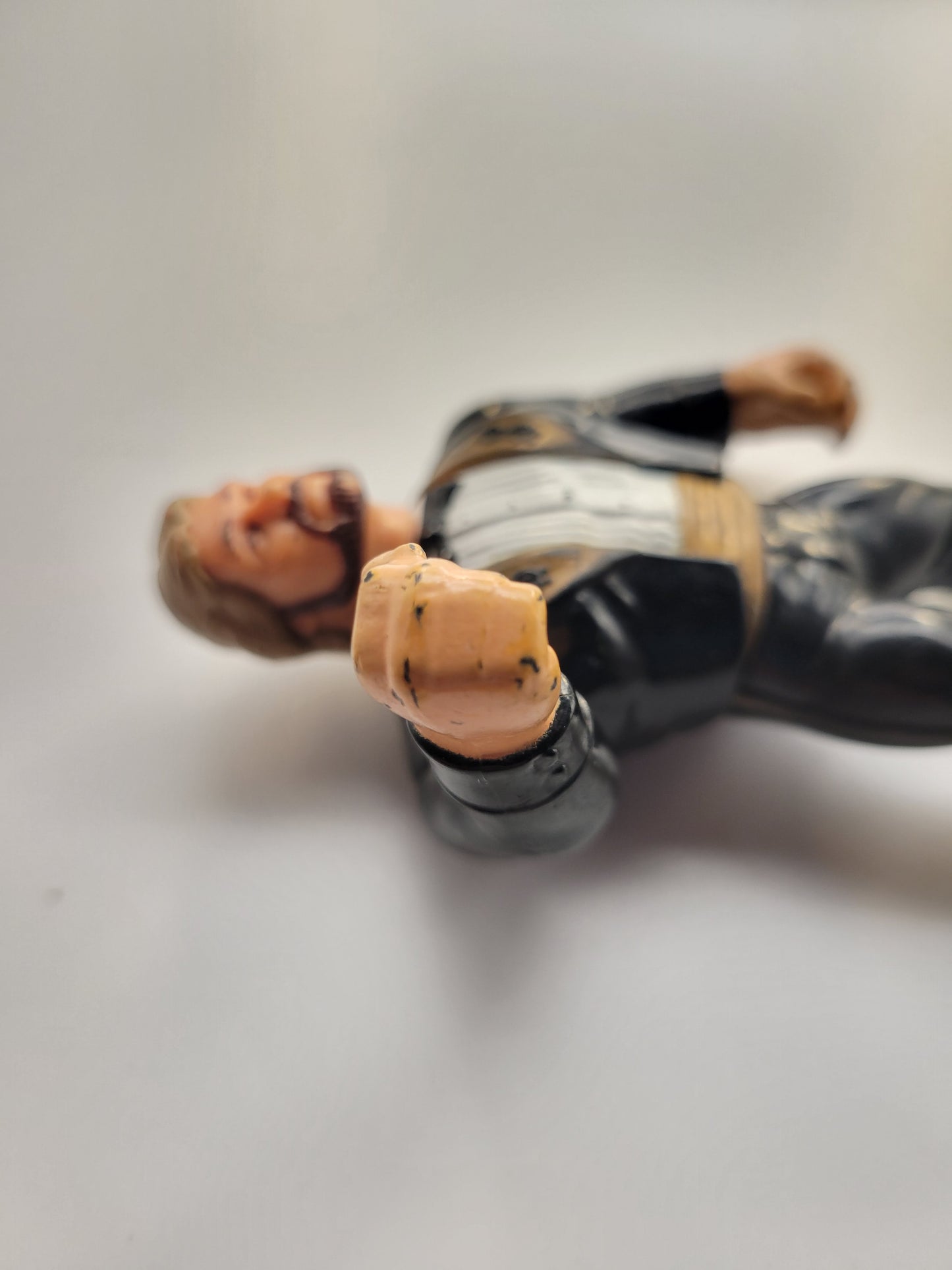 As a loose action figure, it may come with varying levels of wear depending on its condition but is valued for its nostalgia and representation of a classic wrestling era.