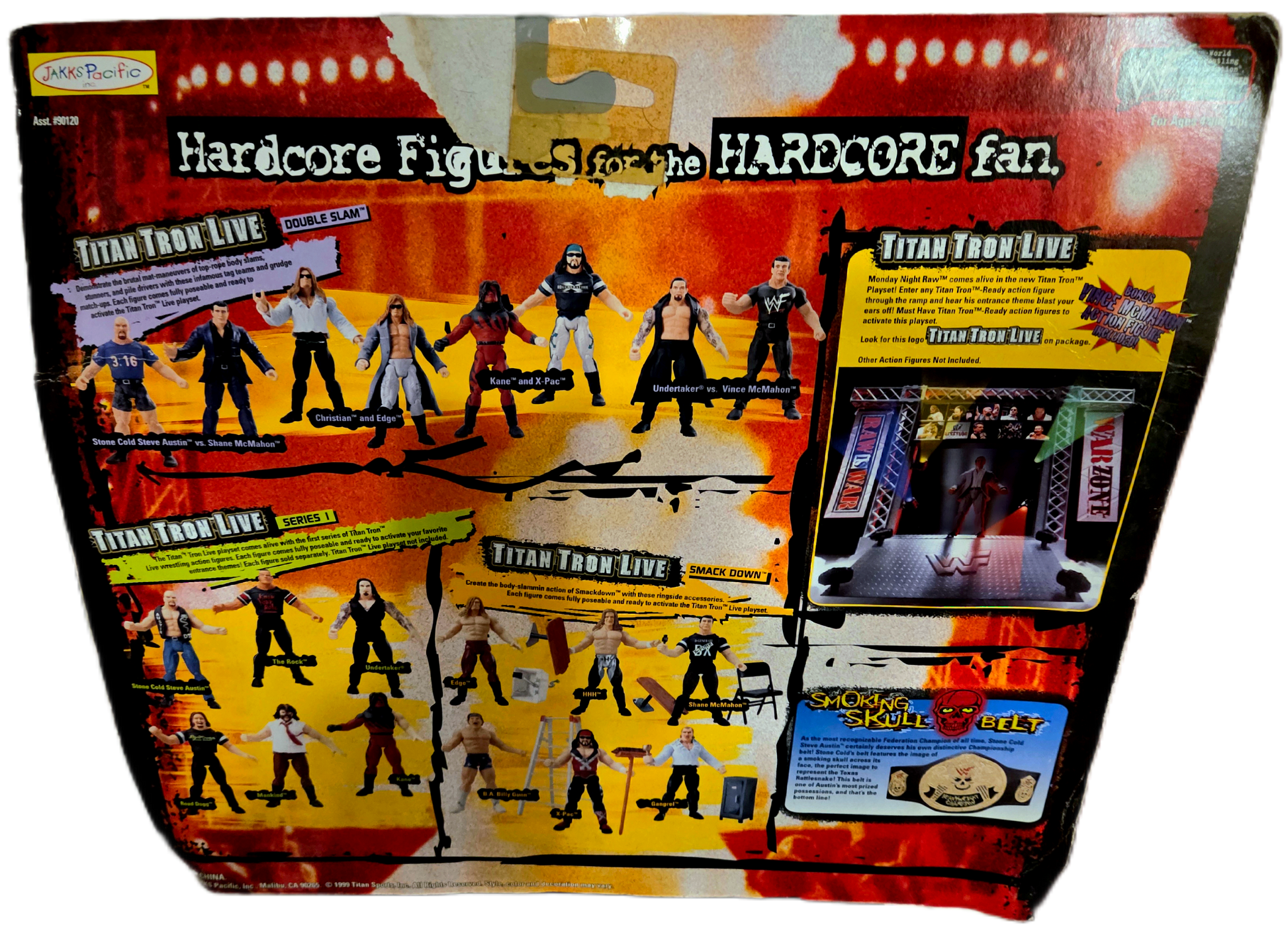 The Jakks Pacific WWF Titan Tron Live Double Slam Edge and Christian 2-pack is a vintage wrestling figure set released in 1999. This set features the legendary tag team during the "Attitude Era" and is part of the "Double Slam" sub-series, which focused on iconic duos.