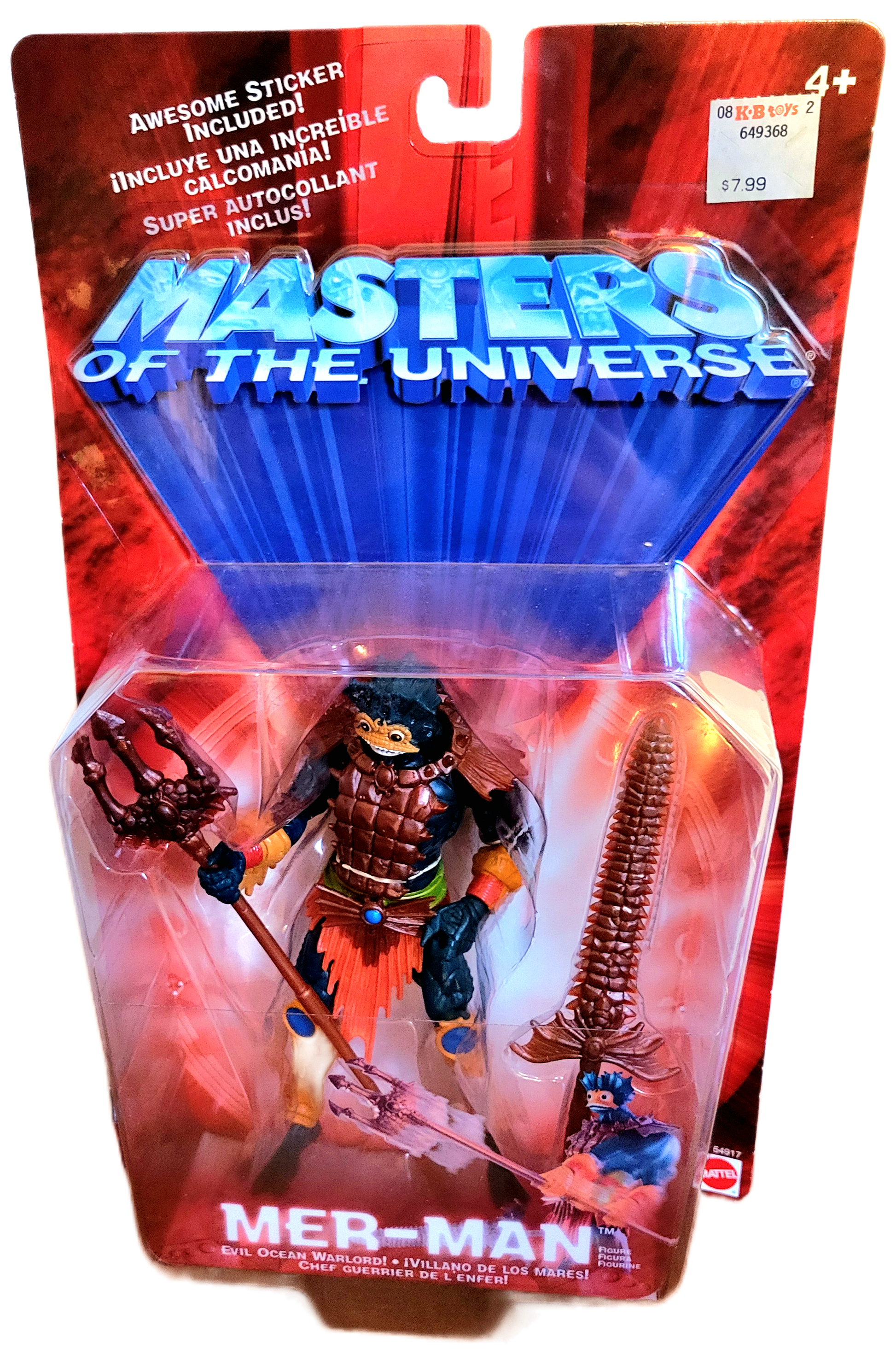 The "Mer-Man" action figure is part of Mattel's 2002 Masters of the Universe (200X) series, released in 2002 as part of Wave 1.