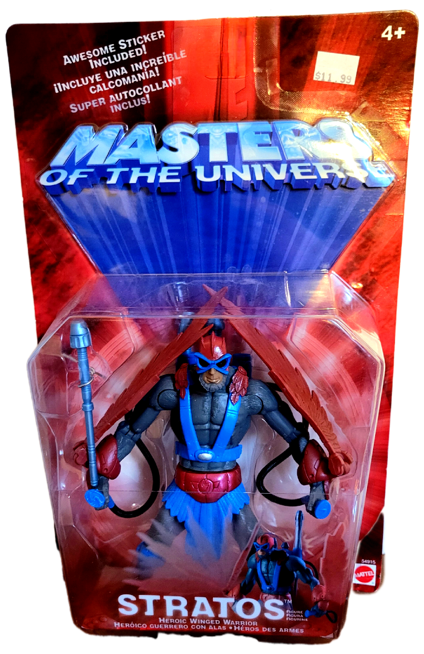 The Mattel Masters of the Universe 200x Stratos action figure is a reimagined version of the classic Heroic Winged Warrior from the early 2000s Masters of the Universe (MOTU) toy line, often referred to as the "200x" or Mike Young Productions era.