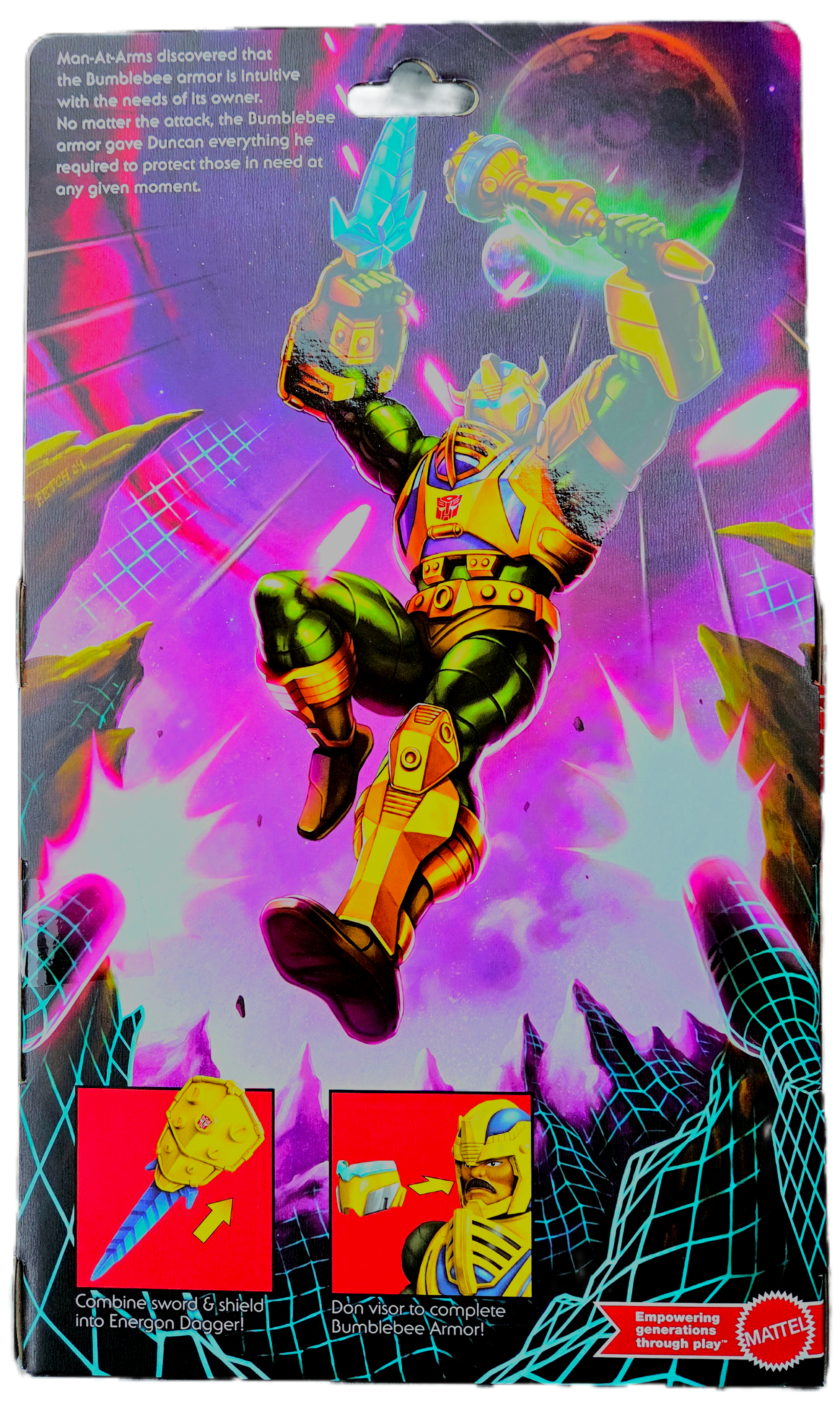Collector Packaging: It is packaged in a window box with a retro design that pays tribute to both the MOTU Origins line and the original Transformers Generation One (G1) packaging of the 1980s.