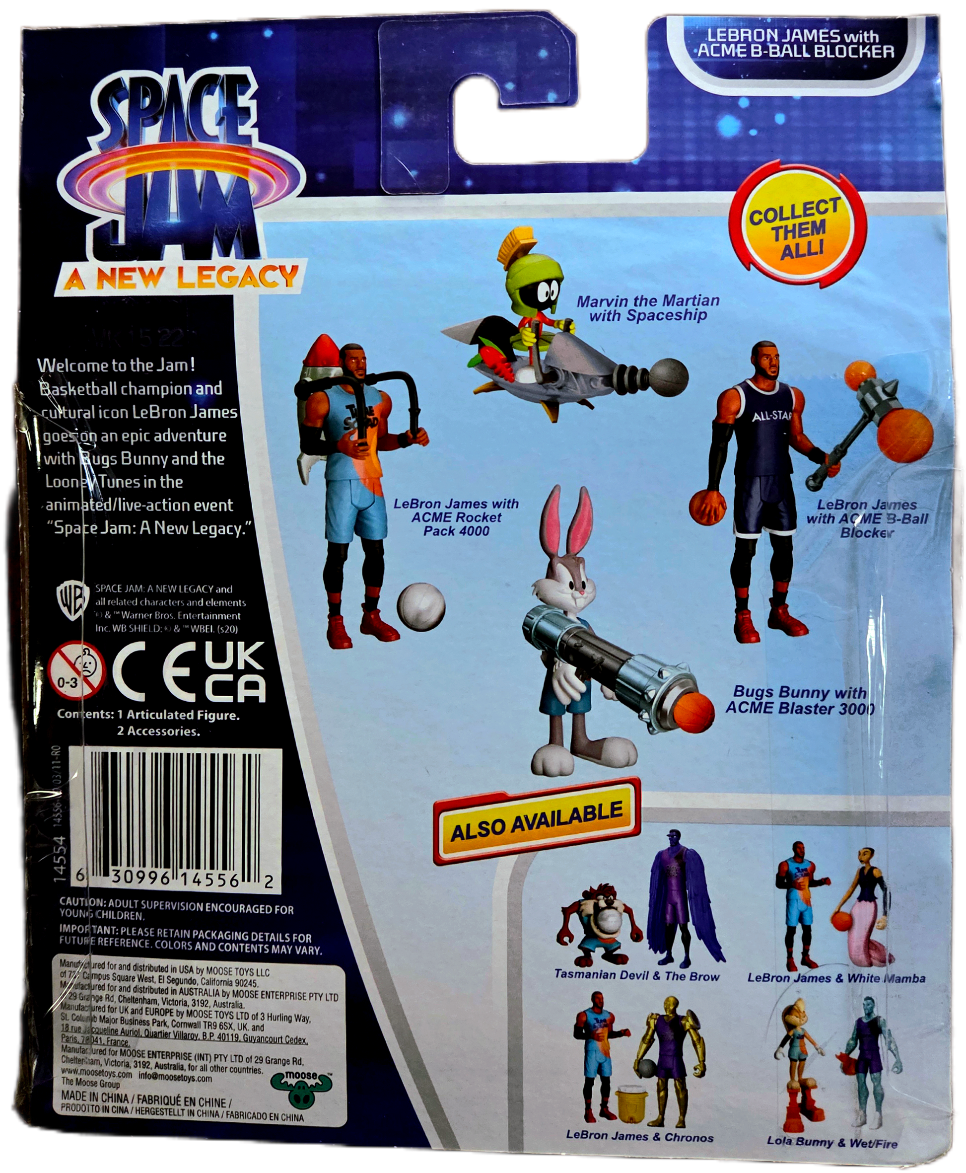 The Moose Toys Space Jam: A New Legacy LeBron James with Acme B-Ball Blocker Action Figure is another awesome collectible from the "Baller Figures" line, designed to recreate key moments from the movie.
