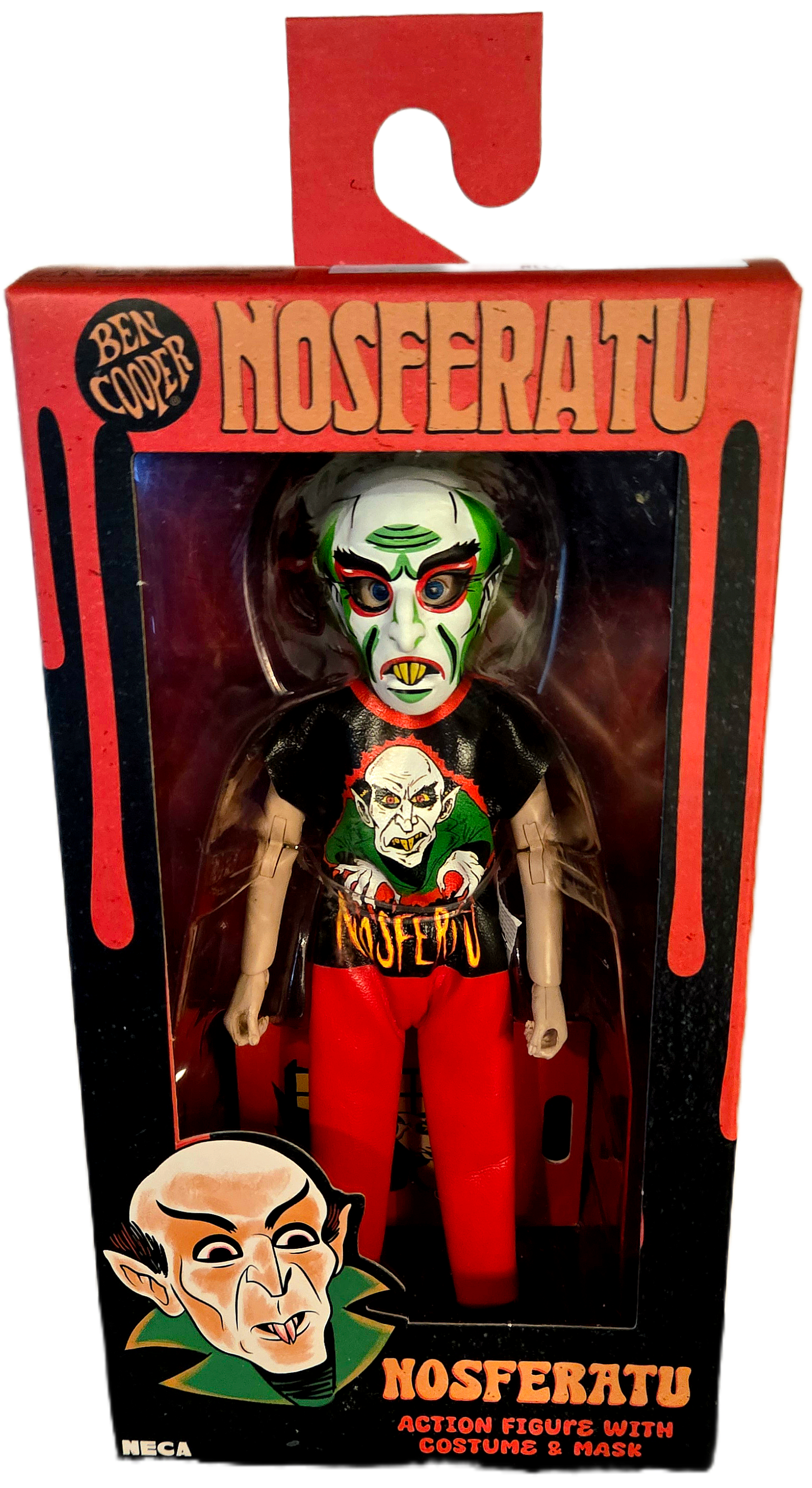 Character and Inspiration: It features a kid wearing a Halloween costume inspired by Count Orlok from the silent film Nosferatu. NECA designed this figure in the style of how a Ben Cooper costume for this character would look if produced today.