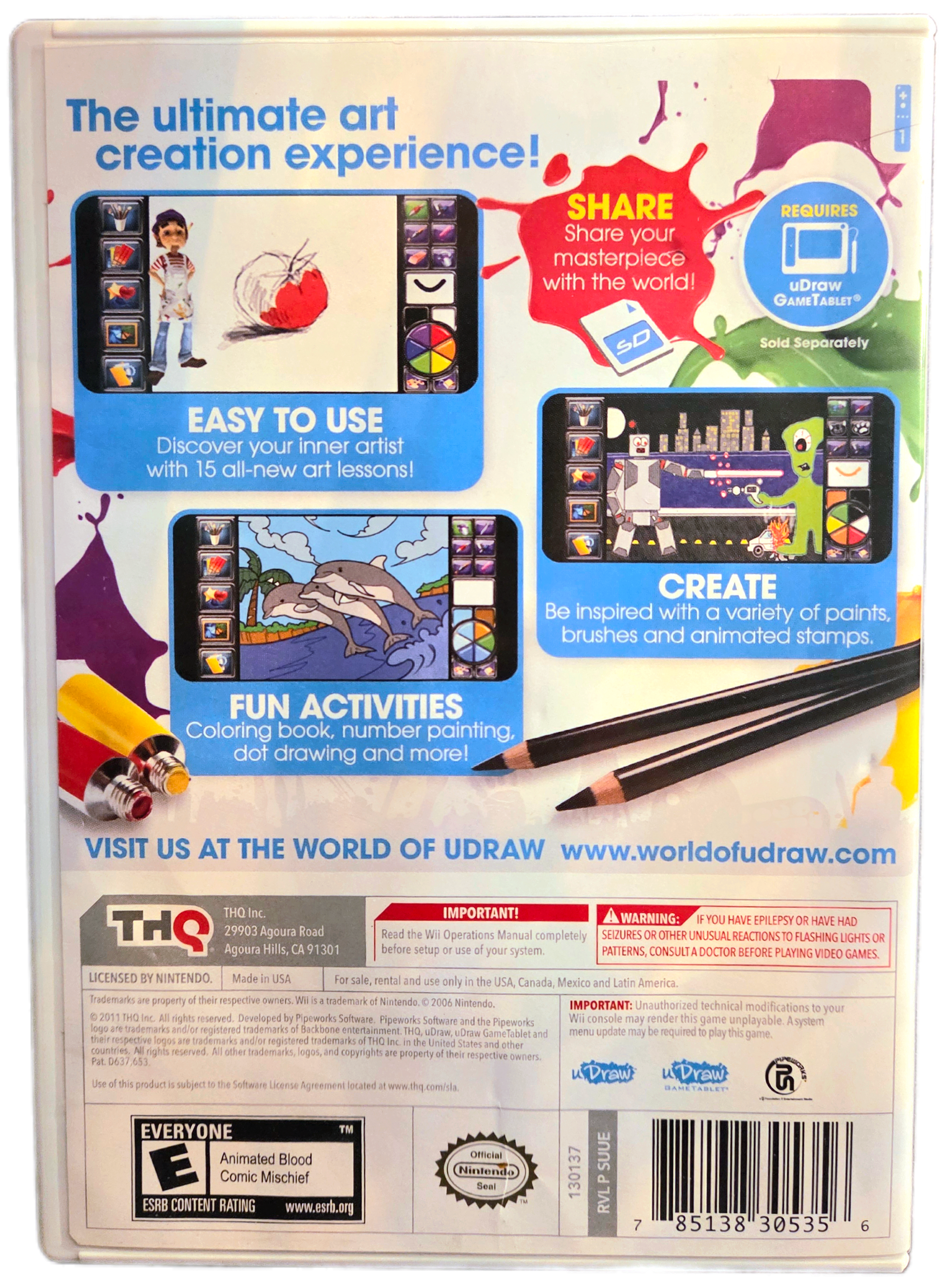 Required Accessory: It requires the uDraw GameTablet (a specialized drawing pad and stylus) to play, which allows for pressure-sensitive input and free-form drawing.