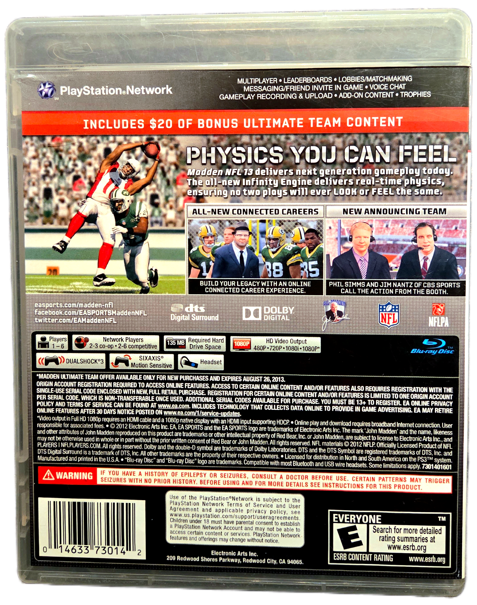 Madden NFL 13 for the PlayStation 3 is the 24th installment in the Madden NFL series, released in 2012. It represents a significant overhaul for the franchise, introducing key technological advancements and a massive change to the career mode. This edition features Calvin Johnson on the cover.
