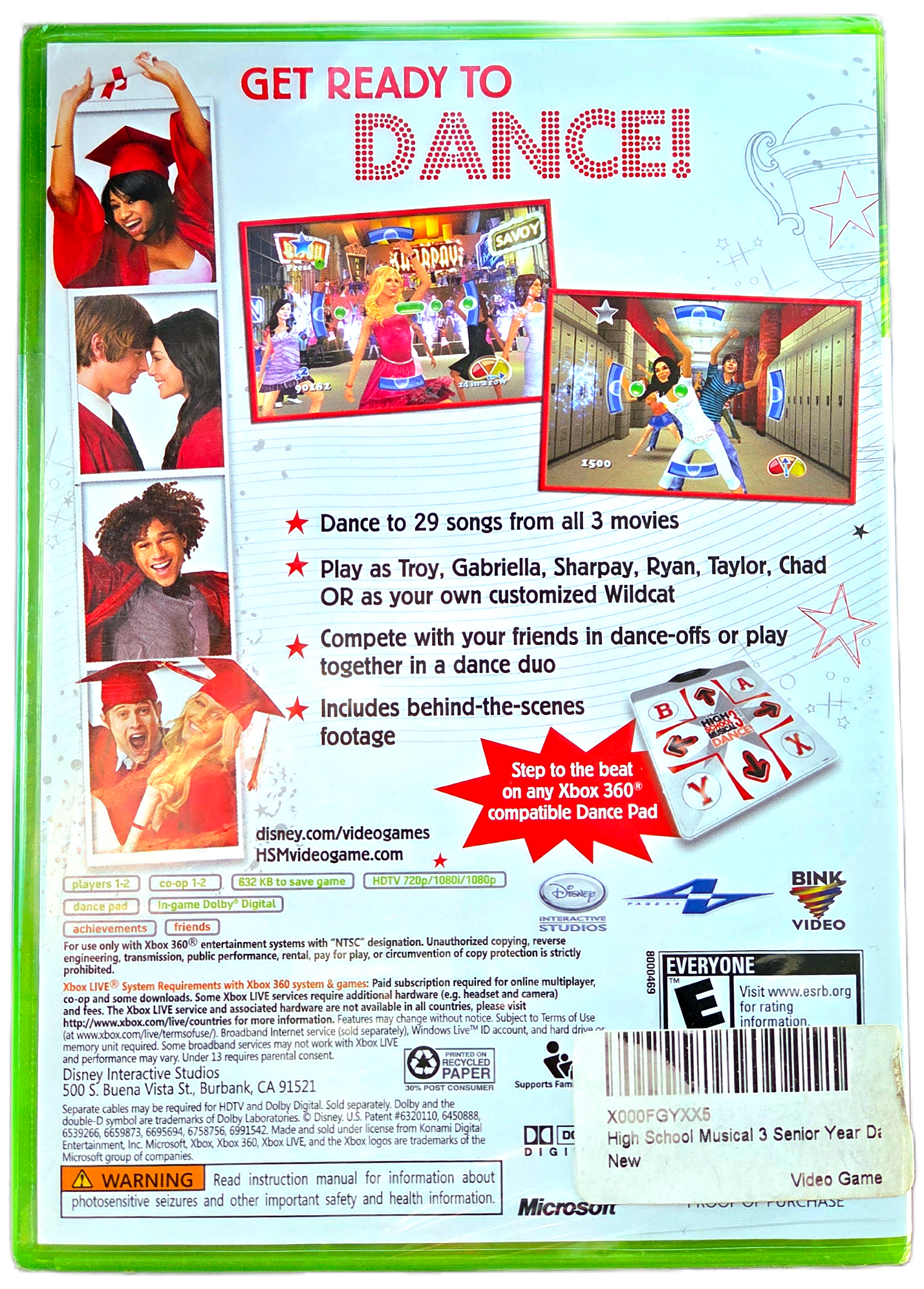 XBOX 360 Disney High School Musical 3 Senior Year Dance Sealed Video Game