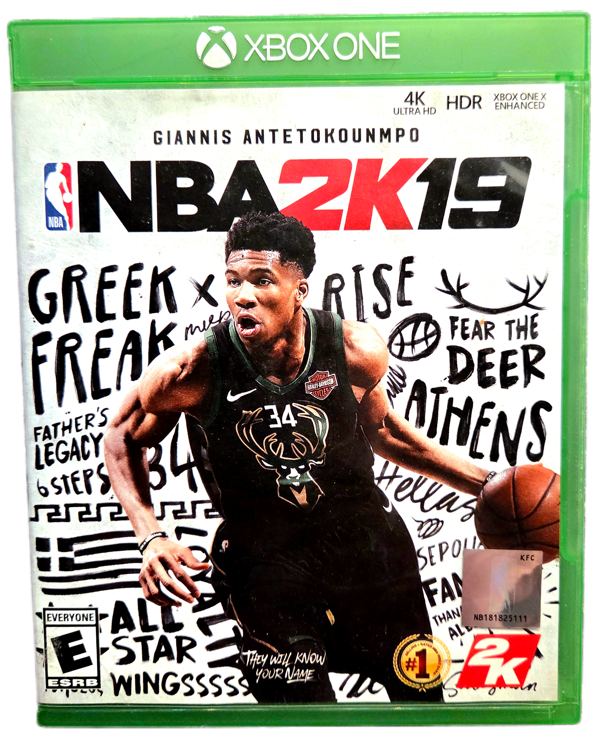 Released in 2018, NBA 2K19 for the Xbox One celebrated the franchise's 20th anniversary with significant improvements to defensive gameplay, AI intelligence, and its narrative-driven MyCAREER mode. Featuring Giannis Antetokounmpo as the standard cover athlete, the game is widely regarded for its realistic presentation that mimics a live TV broadcast.